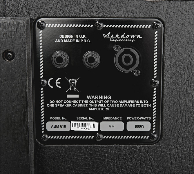 Rated at 800 Watts RMS, the 4 Ohm Ashdown ABM 610 cabinet is loaded with 6 x 10" Ashdown BlueLine drivers. Constructed from high-grade birch ply and protected by a tough, buffalo leather cloth covering, metal corners and steel grilles, the ABM 610 is a tilt-back design, with a heavy duty bar handle, kick plate, castors and slide rails. Ashdown ABM Cabinets use high quality handles in favor of inferior flip handles which can become loose and rattle after years of use. Cabinet vibration is reduced by the use of heavy-duty rubber feet.