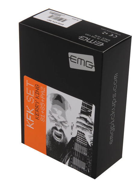Package Includes: EMG's exclusive Quik-Connect? cables (2), 25k split shaft volume/tone (standard) controls (2), screws & springs. Also a removable Kerry King card on the box and 1 EMG / Kerry King signature collectable guitar pick.