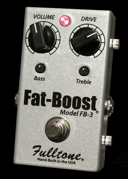 The Fulltone Fat-Boost 3 is a Discrete, Class-A, FET (Field-Effect-Transistor) pedal offering up to 35dB of non-distorted Gain without changing your signature sound ...unless you so desire You can fatten/distort your tone, brighten or mellow up the sound, add or subtract Bass, and add even-order harmonics! The FB-3 has True-Bypass switching (using the finest switch made, the Fulltone 3PDT) and incorporates a super-bright LED without the loud popping sound thanks to our proprietary anti-pop circuitry.